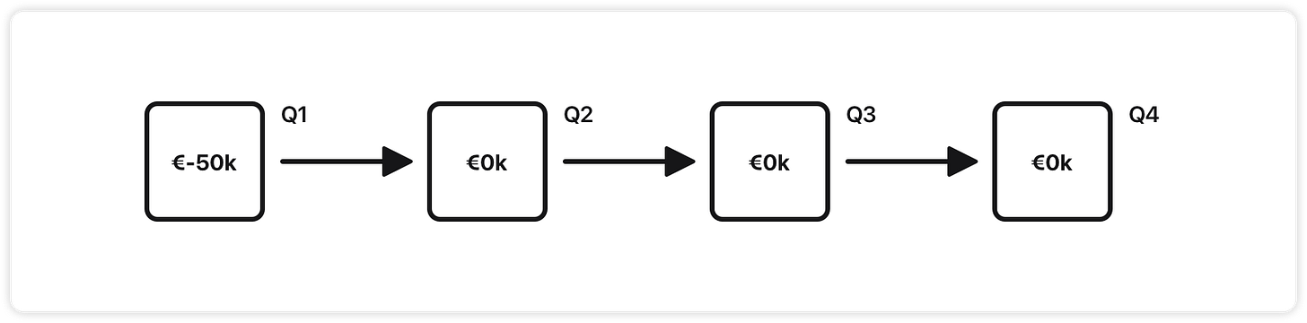 Cash flow: The pilot costs €50k in Q1 but generates no revenue without further investment.